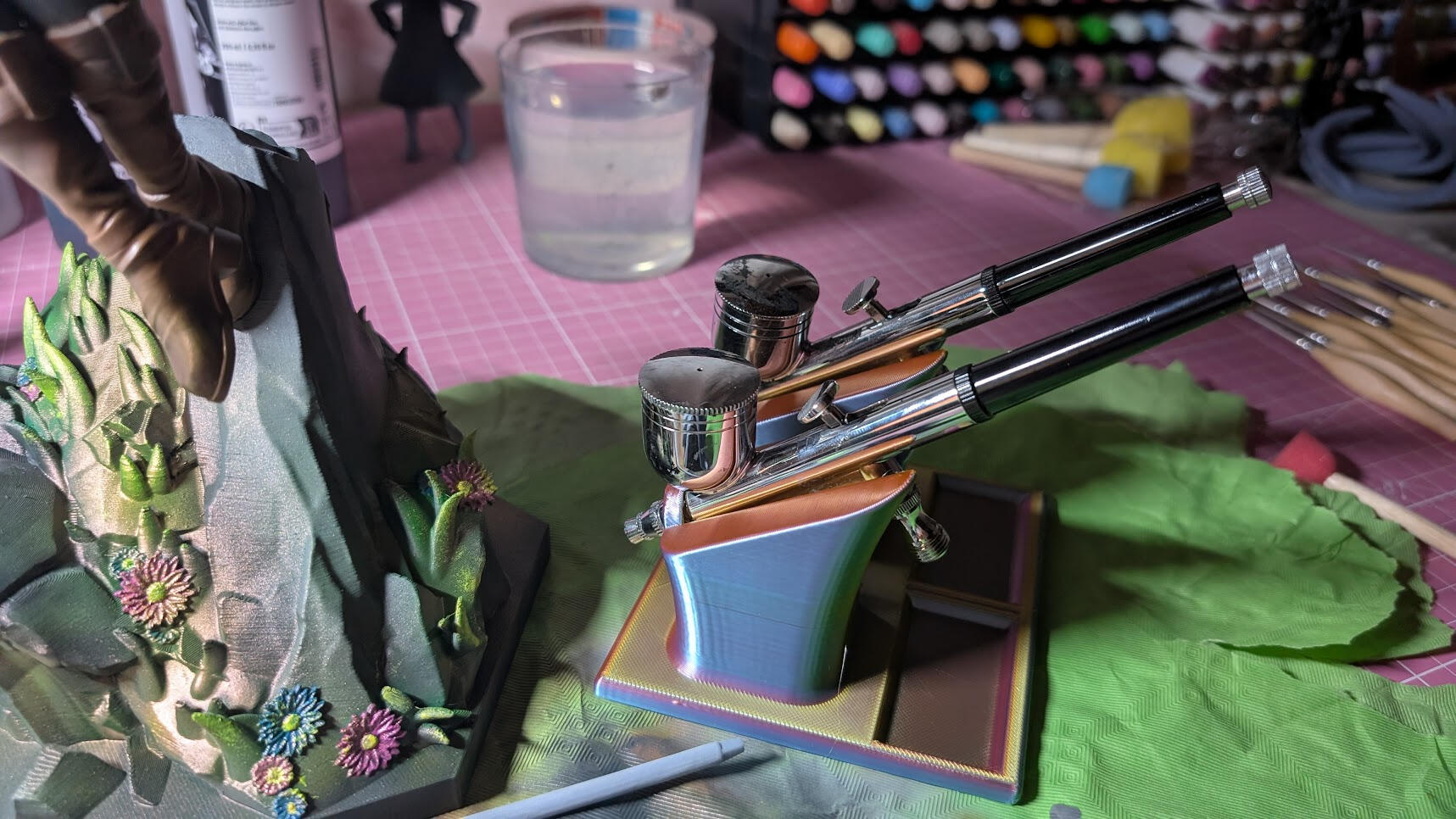 This includes 3D modeling, printed pieces and hand-painted objects, exploring the intersection between illustration and tangible art.